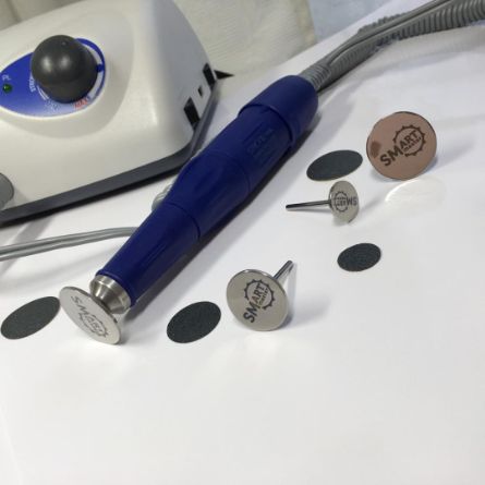 Абразивные насадки смарт-диска выполнены из карбида кремния, который бережнее воздействует на кожу и не оставляет «рвущих» следов. Колпачки состоят из оксида алюминия и менее деликатны. Диск не нагревается при работе, поэтому клиента нет чувства жжения. Колпачок из-за локального характера работы нагревается и печет в обрабатываемом месте